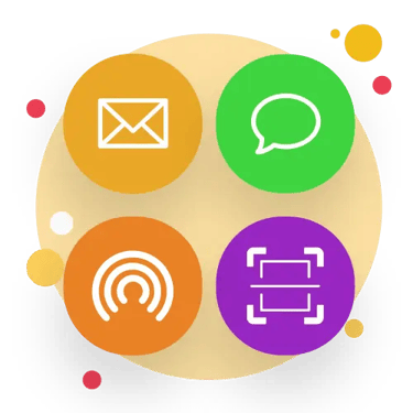 Easily share your photos and videos via Email, SMS, AirDrop, QR Code.
