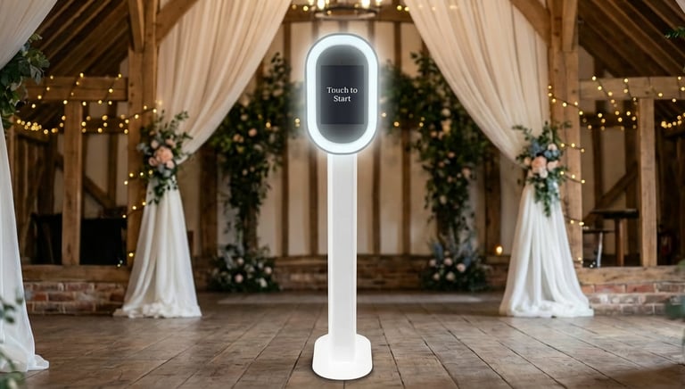 Our Magic Mirror hire is the perfect budget-friendly. Compact and stylish, it lets your guests snap unlimited photos, GIFs, and boomerangs, all ready to share instantly and saved in a digital gallery after the event.