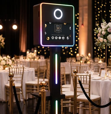 All of our bookings include a stylish professional backdrop, designed to perfectly frame every photo taken at the selfie pod. Measuring 2.1m x 2.1m, our backdrops provide full coverage for individuals and groups, creating a clean, polished look that enhances every shot. Included at no extra cost, they help ensure consistently high-quality photos while complementing a wide range of event themes and venues.